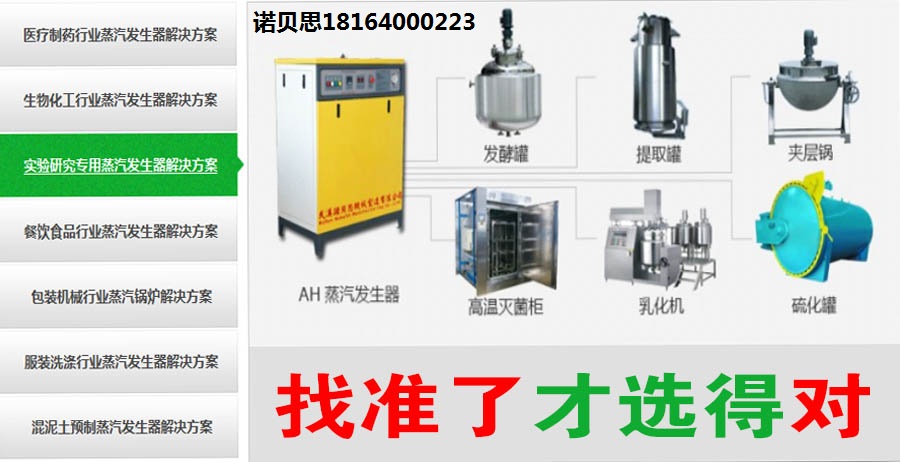 曾經(jīng)有個用戶問我,為何你們諾貝思的電蒸汽發(fā)生器有多個型號,而別的廠家電蒸汽發(fā)生器只有一個型號。我是這樣回答的:諾貝思把蒸汽發(fā)生器的運用行業(yè),根據(jù)共性等多個因素分為了混凝土養(yǎng)護、醫(yī)療制藥、消毒清洗、實驗研究、服裝加工、機械包裝、食品加工、生物化工八個行業(yè),我們針對這八個行業(yè)研發(fā)設計了相對應的蒸汽發(fā)生器。所以我們在選擇蒸汽發(fā)生器的過程中,不僅僅只把眼光考慮在價格和質量上,更應該考慮適用性上!