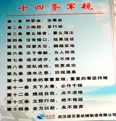 武漢諾貝思蒸汽發(fā)生器隨著業(yè)務不斷擴大,部門和員工規(guī)模越來越大,企業(yè)人員管理也越趨復雜。公司逐步引入軍事化管理。激發(fā)員工斗志,保持員工高昂的氣勢。公司規(guī)定每天早會前集體朗誦公司十四條軍規(guī)三篇,吸收新鮮文化!武漢諾貝思是湖北最大的業(yè)做蒸汽發(fā)生器的生產(chǎn)廠家,15年研發(fā)生產(chǎn)銷售經(jīng)驗,主營蒸汽發(fā)生器、電蒸汽鍋爐、電蒸汽發(fā)生器!