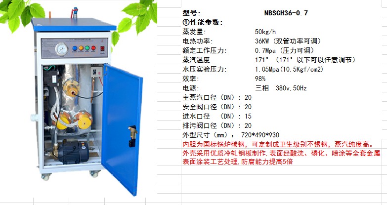 諾貝思36KW電加熱蒸汽發(fā)生器NBSCH36KW: